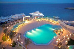 صف اول من البحر ... يحتوي علي شاطئ رملي ... 5 نجوم ديلوكس ... يقع في الممشي السياحي ...حفلات ترفيهيه...خدمه متميزه